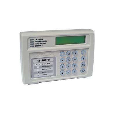 ПЦН RS-200PN используется совместно с выносными приемниками RS-200RD (до 5 приемников одновременно) и имеет текстовый русифицированный жидкокристаллический индикатор (ЖКИ) на 2 строки по 16 символов, зуммер звуковой сигнализации, реле для управления различными внешними тревожными устройствами (сиреной, устройством автодозвона и т.п.), встроенные энергонезависимые часы с календарем, выходы RS-232 для подключения компьютера и модулей расширения. К пульту RS-200PN можно подключить принтер через дополнительный адаптер."